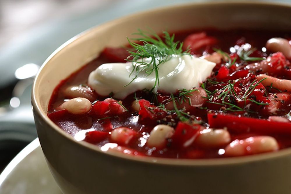 This type of delicious soup is commonly consumed in Eastern Europe. The variety most commonly associated with the name in English is of Ukrainian origin, and includes beetroots as one of the main ingredients, which gives the dish its distinctive red color.